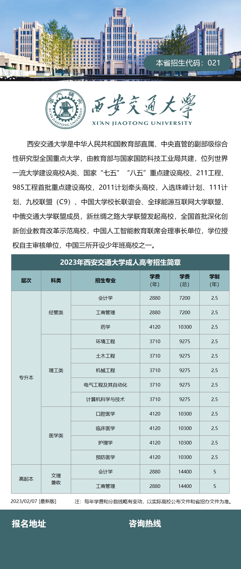 2023ÄêÎ÷°²½»Í¨´óѧ¼ÌÐø½ÌÓýѧԺ³ÉÈË£¨¸ß¿¼£©½ÌÓýÕÐÉúרҵ¼°Êշѱê×¼¼°Ñ§ÖƼ°ÕÐÉú´úÂë021